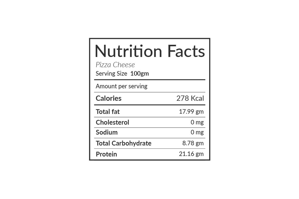 | Ingredients | Acidity Regulator (Citric Acid), Anti Caking Agents INS460, Common Salt, Lactic Cultures, Milk Solids |